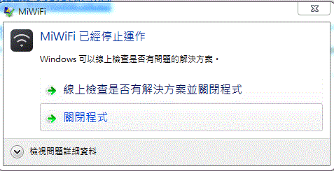 請問各位大大,有人有跟我一樣的情況嗎?“網卡模式”每次重開電腦後,畫面右下角都會出現“驚嘆號”不能連網。必須重新切換為WiFi模式重輸密碼後才能正常上網。是什麼問題?驅動程式版本為:2.4.0.838作業系統為:Win7家用進階版(64bit)註:小米隨身WiFi 8g版。