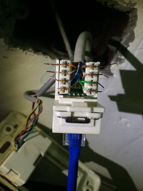 樓主你說你兩端使用RJ45水晶接頭後可以上網那你線的接法是568A還是568B?還是沒按照A或B的排法,只是兩端顏色排列一樣去做?(白藍/藍及白棕/棕排去1.2.3.6或其他排法類似這樣的)要先了解這點再去抓是否資訊座有問題,還是線有問題