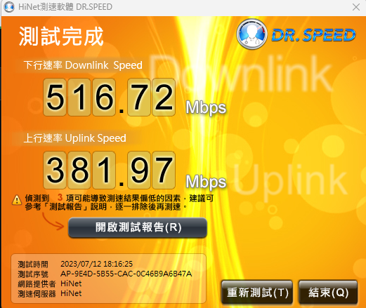 家裡的 合勤Multy x AC3000 MESH(三頻機)行動裝置 與 IPAD PRO測試下來都是這樣,上傳就是400多而已WIFI 5的關係吧~然後用最便宜的WIFI 6小米AX1800 (黑色沒天線那台)(幾年前買的)測試出來就可以滿1G/600M那條WIFI 5那台一樣是下載500多 上傳400多小米AX 1800 那台WIFI 6 則是下載790多,上傳635滿。三星機則是可以跑到900多M,上傳也是滿。不過穩定度還是三頻機那組最穩...排除停電,幾乎沒斷過。G大你要不要考慮試著...不要經過交換器XT12直連烏龜pppoe,測速看看