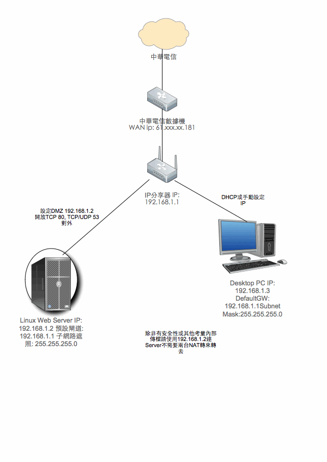 如果PING 得到 DNS, PC 是否連得到 LINUX 的 WEB ?