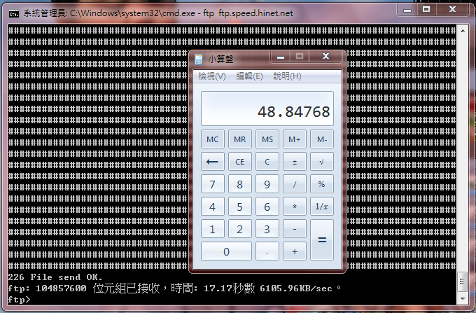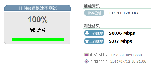 Hinet 100MB 單檔十線程下載 (測好幾次平均速度約5100KB/s~5300KB/s)