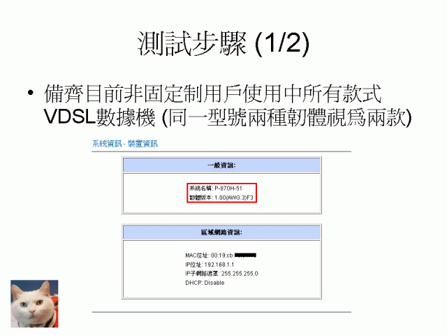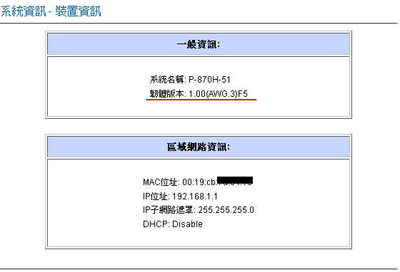 花店算你狠居然敢出遠端韌體更新這招沒在怕更新到一半用戶關機的這個月幹訐 NCC 忙完之後回來居然發現可以全速下載之前的韌體版本是 1.00(AWG.3)F3剛剛進數據機看了一下版本變成 1.00(AWG.3)F5看來賠償合理月租費的費用太高值得冒著改壞數據機的風險硬要昇版最後要謝謝管媽發公文給花店施壓感恩