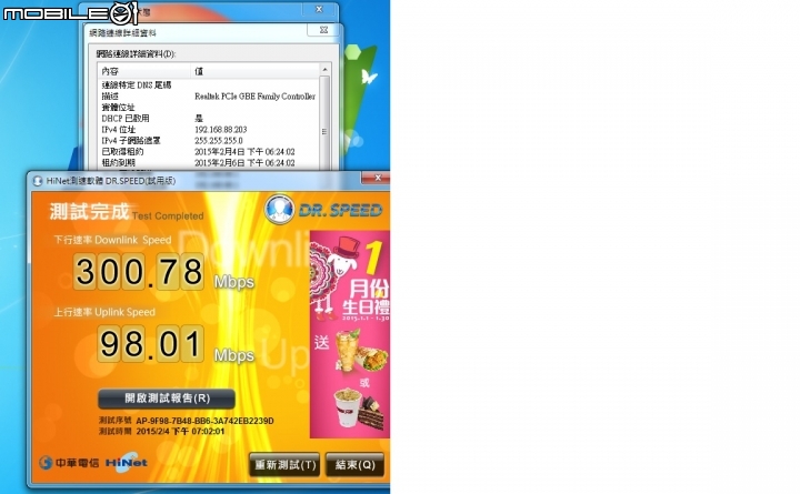 chih_haohung wrote:目前 中華電信+Hinet...(恕刪) 想不到兩年我開立這一個主題 沒想到在兩年後自己也加入這一個300M/100M俱樂部了(http://www.mobile01.com/topicdetail.php?f=507&t=4785980)