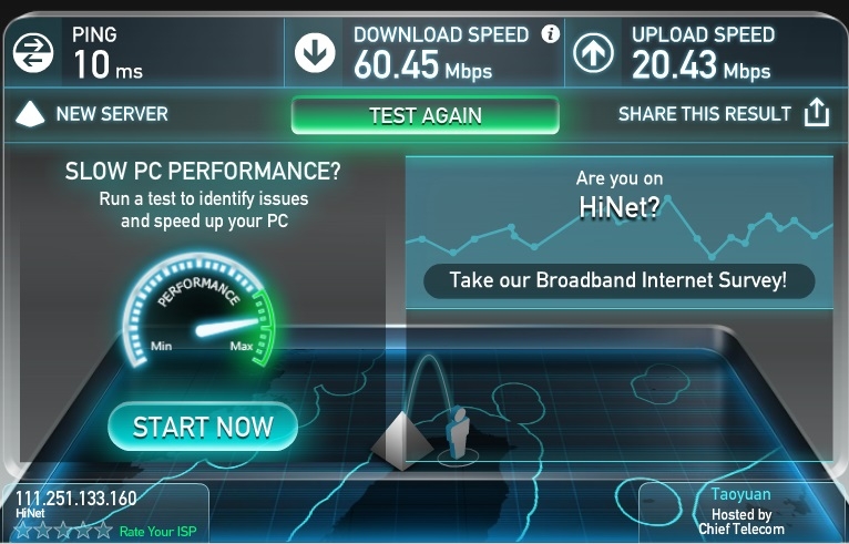 原先100/40 降速為60/20 雙線 (PING 真的很糟
