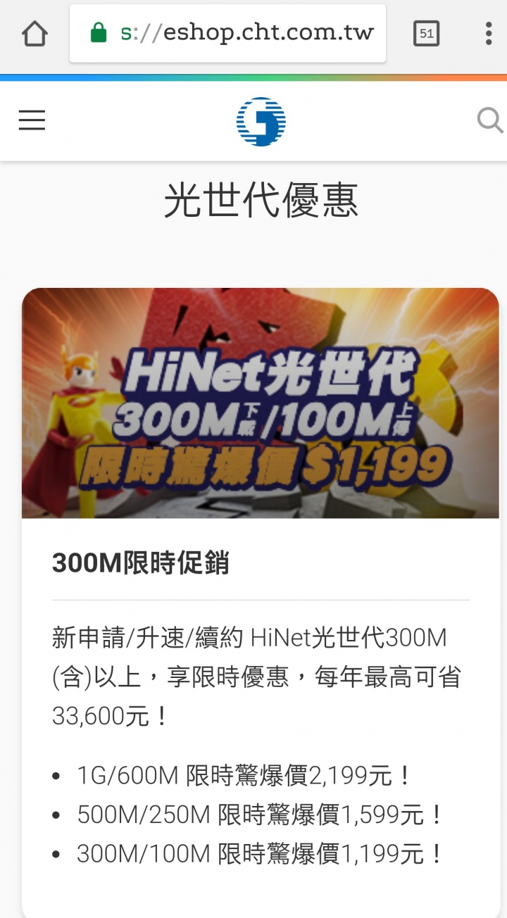 林華仔 wrote:是這張海報 官方怎沒...(恕刪) 數位門市點優惠方案就看到了:https://eshop.cht.com.tw/home/consumer/broadband/preferential/hinetbroadbandpromo