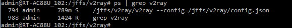 ps | grep v2ray 命令,V2Ray server啟動會出現 (略.) /mnt/sda1/v2ray/v2ray --config=/mnt/sda1/v2ray/config.json
