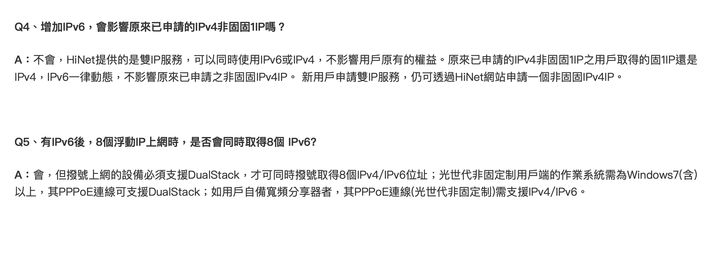 小弟近期因為購買新的 Wi-Fi 路由器,在設定過程中無意發現使用 "http://test-ipv6.com" 這個 IPv6 的檢驗網站測試時,同時檢測出 IPv4 與 IPv6 兩種 IP,在 Iipv6.google.com 的測試中也表示 IPv6 ready。