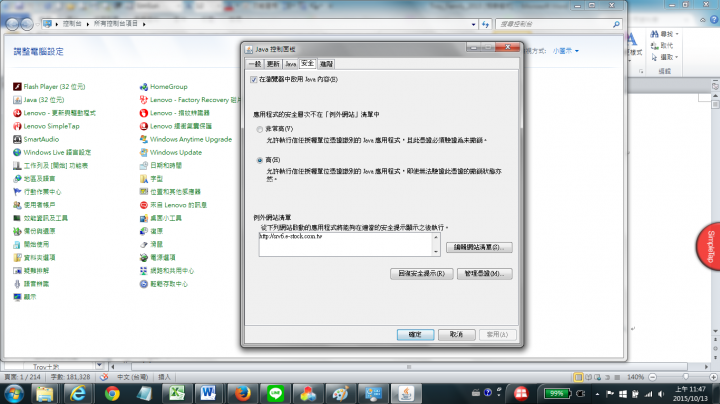 Firefox網頁 顯示"Java 安全已封鎖應用程式". 如何調整"Java 安全"等級 ?