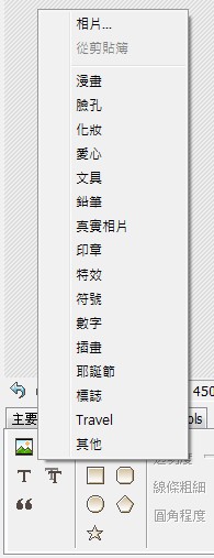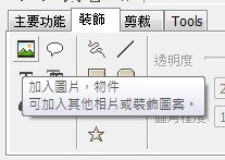 此功能,可以加入圖片、物件,也可加入其他相片或裝飾圖案