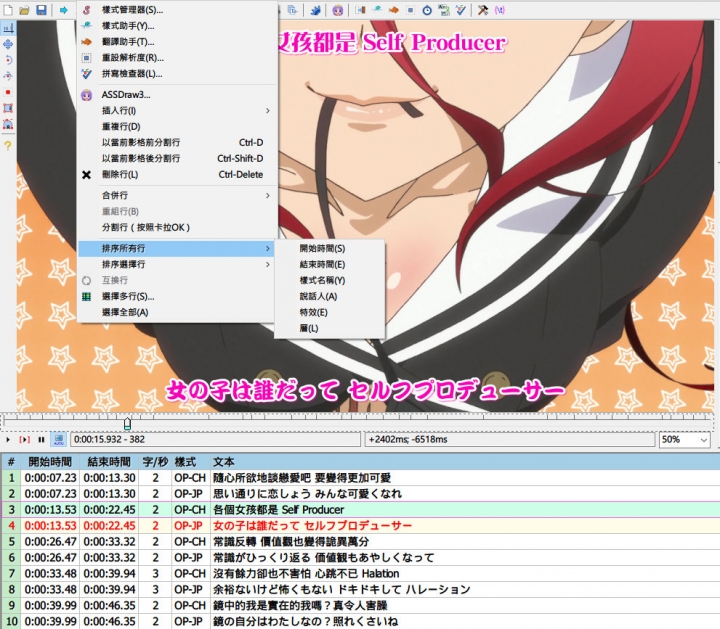只是我習慣用Aegisub去制定每種字的樣式庫