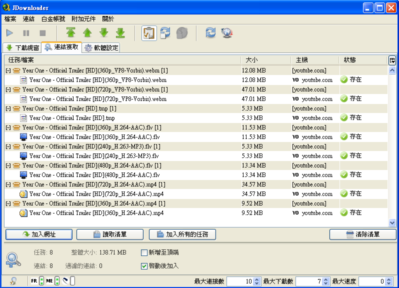 在Video URL欄位貼上Yoytube影片的網址,以及選擇所需要的解析度,就可以進行下載了,我自己使用上有時候會遇到明明有720p或1080p的格式,可是按下Download時,軟體會出現該影片沒有這種解析度格式的對話框,這可時候只需要按下取消再重新按一次Download就可以了 ^^