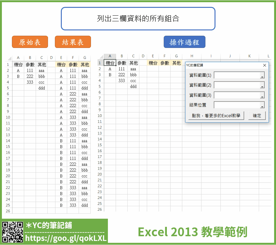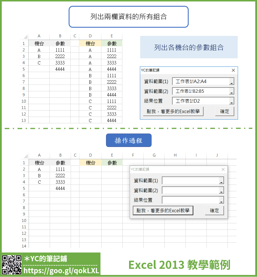 請問一下高手,工作上遇到,excel VBA要如何寫才能達到此需求? 我有很多機台很多參數,想要針對機台以及參數作全部展開(如底下圖所示)以便針對每一個條件建立不同的chart(by 每一機台及每一參數都需對應)感激不盡?