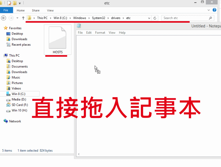 在 C:\Windows\System32\drivers\etc Hosts在 etc 內