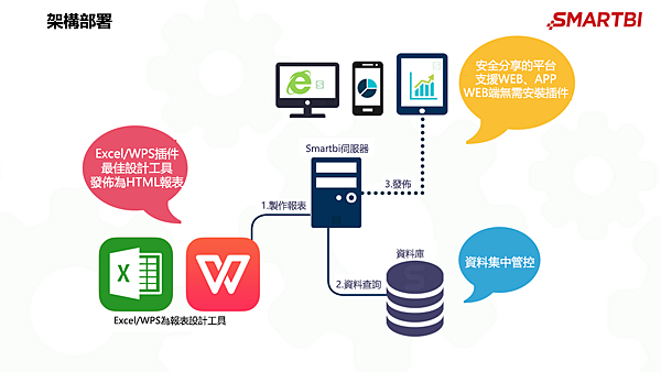 ■ Smartbi伺服器是產品的核心,它首先從資料庫中取值並完成資料集準備工作;