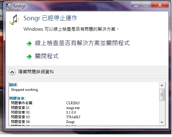 Kars_Li wrote:我常用一個下載音樂...(恕刪) google 微軟fix it center用他來修復和檔案有關的異常-----------------------我剛剛自http://www.thefilehippo.com/2015/04/songr-2016-free-download-latest-version.html下載portable版本玩一下,一切OK喔建議:一 用Revo Uninstaller 移除軟體二 再用 CCclean "登錄檔"再清一遍三 重開機後 安裝軟體