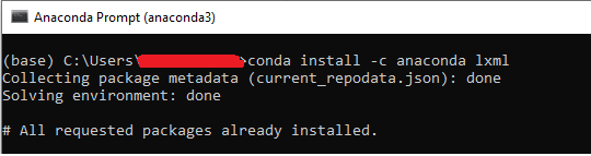 ImportError: lxml not found, please install it