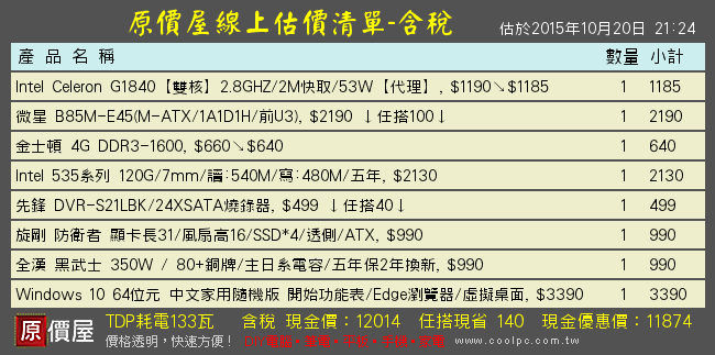 把這台品牌機拆開以零件價格看,品牌不見得一樣