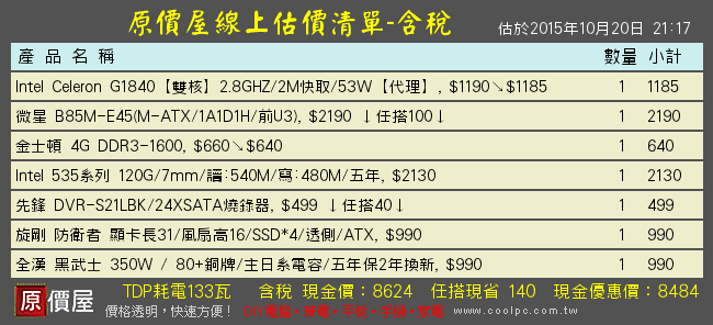 當然應該也有這價位搭配更強效能機種,只是可能要請網友補充分享