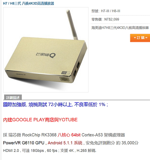 這台是用 海思處理器的,支援 USB3、1G網孔、內裝 SATA 硬碟(或 SSD)