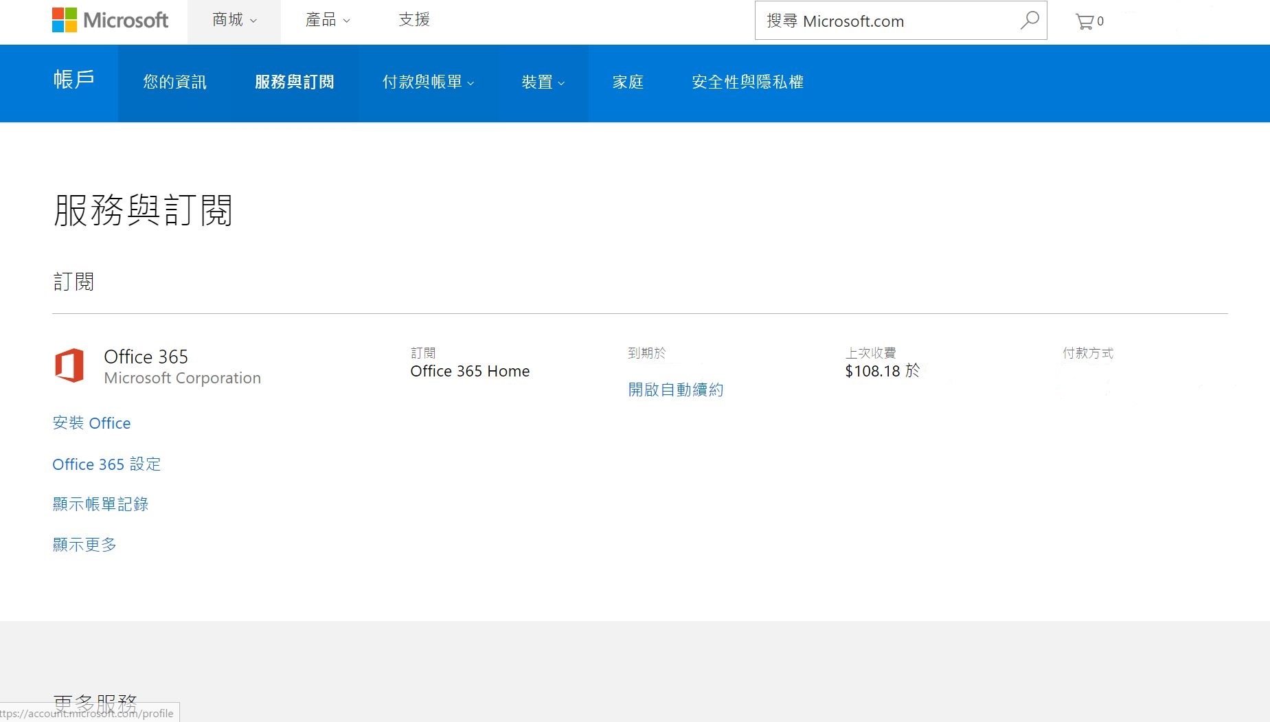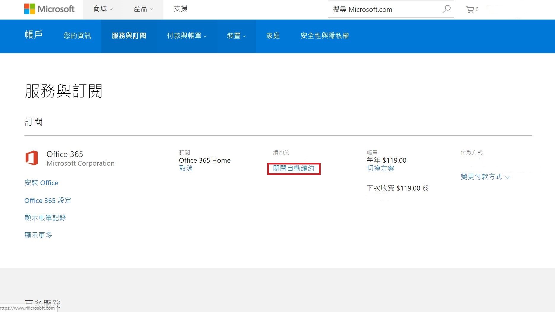 可勾選的項目 自動續約office365個人版