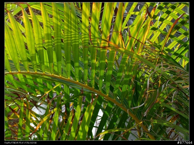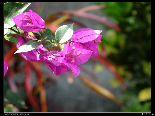 f70最大光圈f3.3,很難拍出『短景深』的模糊效果.但f70卻有個『專業對焦模式』....第一張用EXR 近拍(ISO800)第二張用SP 專業對焦模式 近拍(ISO800)雖然兩張照片拍攝角度及對焦處有些不一樣,但還是有感覺到『專業對焦模式』的效果.第二張專業對焦模式,製造景深變短效果而使花瓣外緣而模糊!==============================再利用家中小陽台,以EXR的DR模式,控制在DR800.拍小蕃茄枝葉來看看光影與細節的表現: