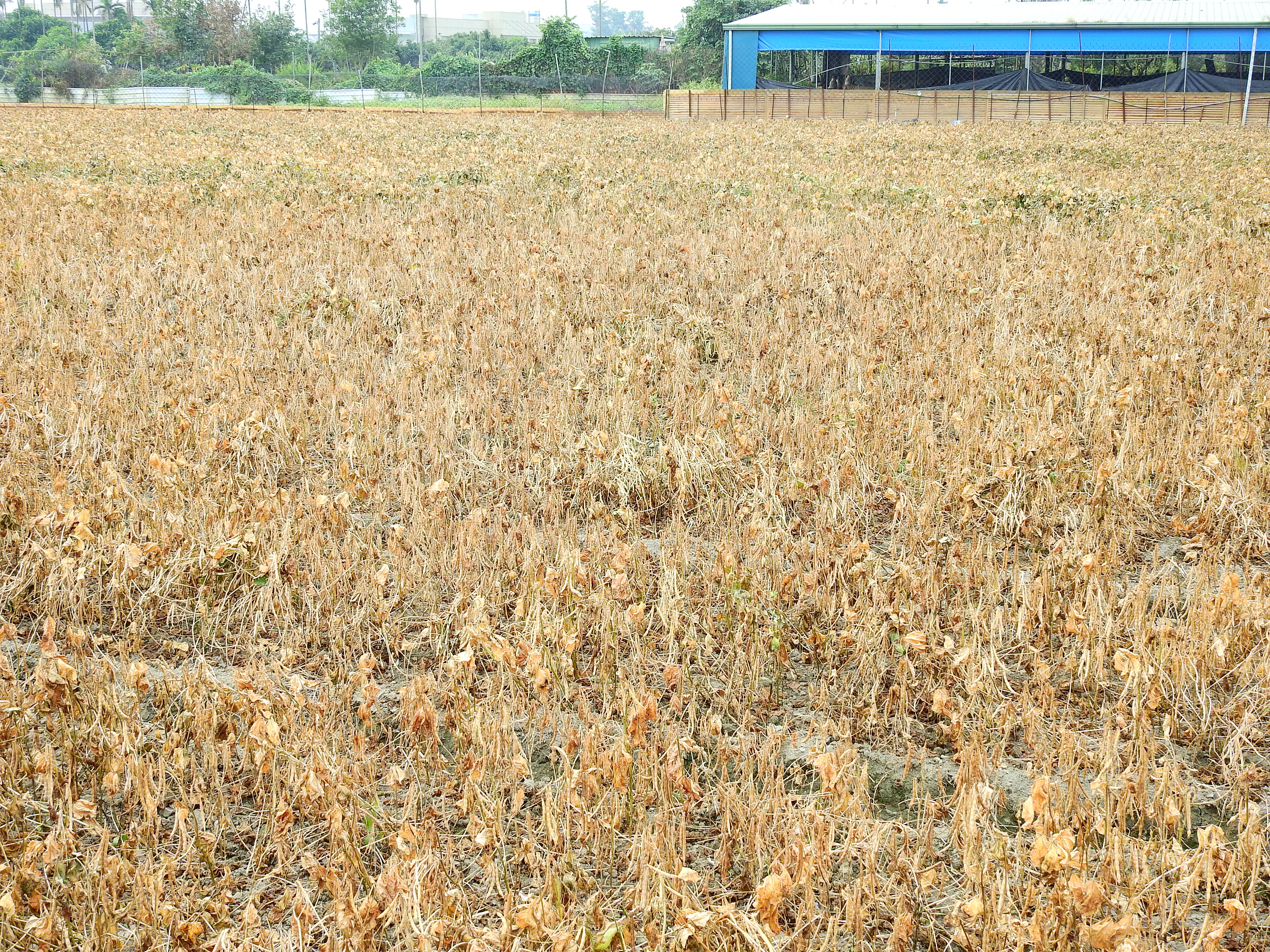 也因為自然放到完全乾燥需長時間,確實有許多毛豆田是灑枯草劑讓紅豆快速萎縮乾燥。