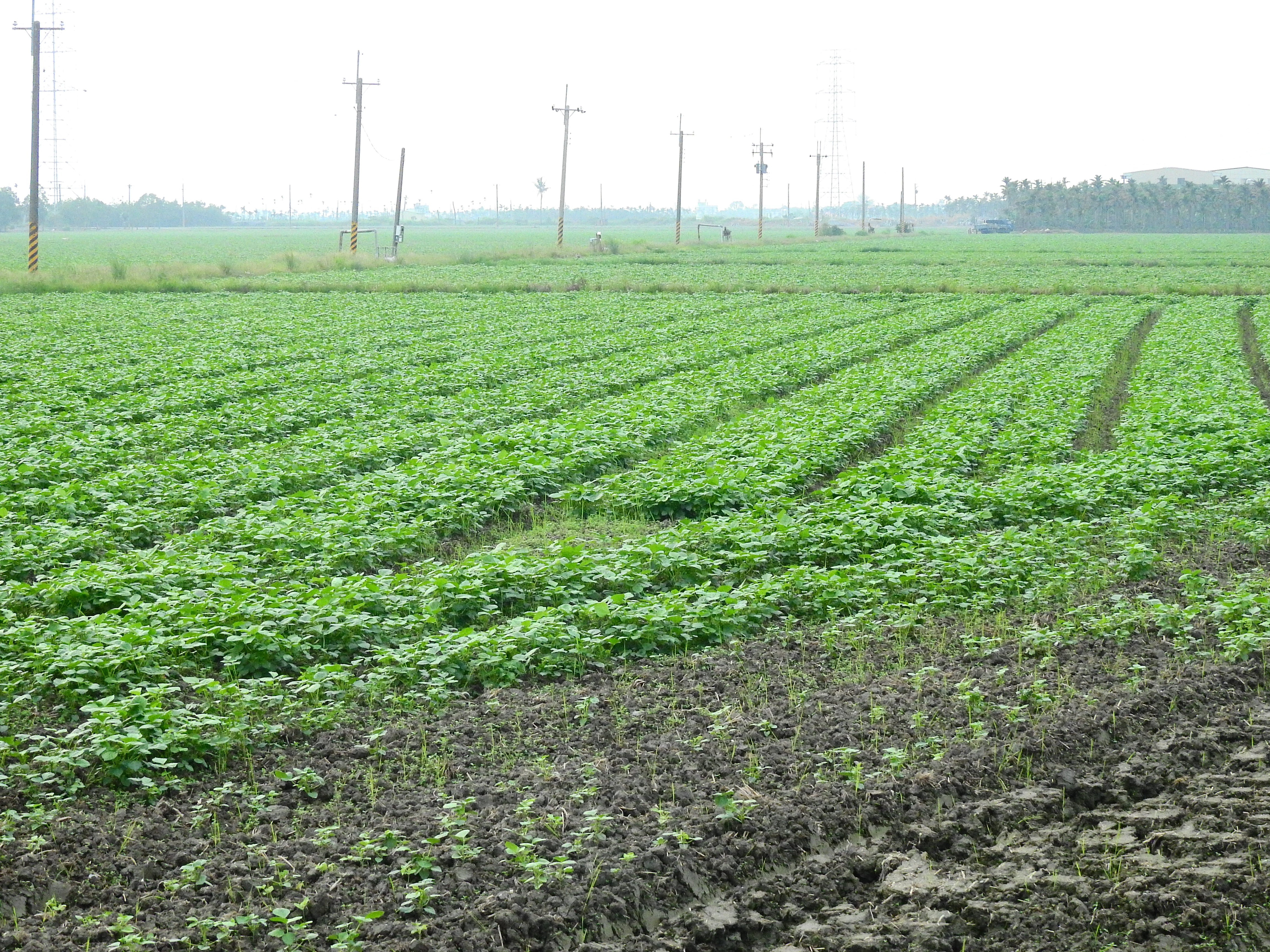 紅豆田則是寬長帶,間距比毛豆田大很多。
