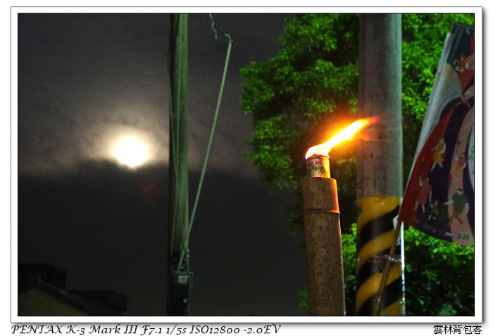 接下來,適逢中秋節雲林詔安客家最重要的傳統民俗活動-澹仔火火把迎暗景遊客庄。讓我們來看看這顆PENTAX HD DA* 16-50mm F2.8 PLM鏡頭搭配上K3 iii會有多麼強大的實用性吧!