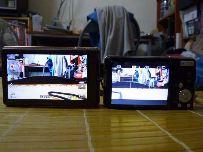 果然便宜的W350只能採用比較差的LCD,側視角度非常糟糕,我個人習慣相機拿在胸部位置拍攝,W350幾乎會看不清螢幕阿