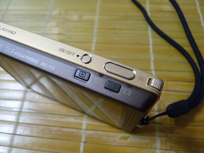 全部的實體按鍵都在背面右上角,快門鍵辦案對焦時有比較緊,W350的太鬆,很容易誤觸,還是TX9感覺比較好,另外變焦鈕可以做到無段變焦(即1.1X-1.2X....到4X變焦),變焦過程很順暢,相較下W350變焦段數過少,很容易變焦過頭,TX9由廣角至望遠端過程約1秒