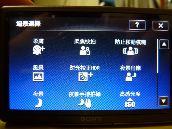 場景選擇之一,逆光矯正HDR是連拍2張合併亮暗部理論上是比較好的方式,W350裡只有傳統DRO選項是拍一張做調整暗部曝光,智慧式自動裡的逆光就是這一種