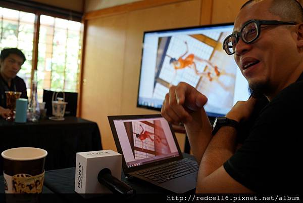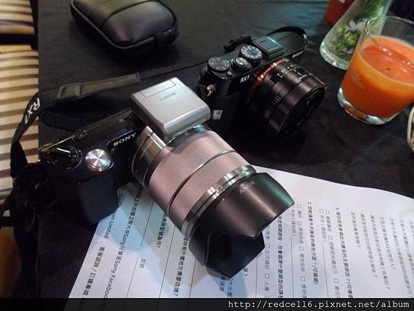 【▼】中場休息時間老師還將他吃飯的專業工具專門拍攝劇場的專業加強型相機讓大家感受一下份量!這樣專業的龐然大物雖然有它不可取代的優勢~但是倘若帶去旅遊可能會出遊未成身先累死~這時候輕巧如燕的RX-1就更顯的靈活好用了。