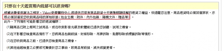 附上 PCHOME/YAHOO 退貨標準,皆有強調 "商品原始狀態"