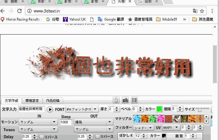 kosen0908 wrote:請問A大能提供舊版...(恕刪) 免費免安裝.六.七年前..較舊的文章才有..http://www.3dtext.in/這個也非常好用.文字材質比較自由.但只能存為連續的圖片.須要用其他軟件再轉為AVI·功夫多一點.也是免費的.