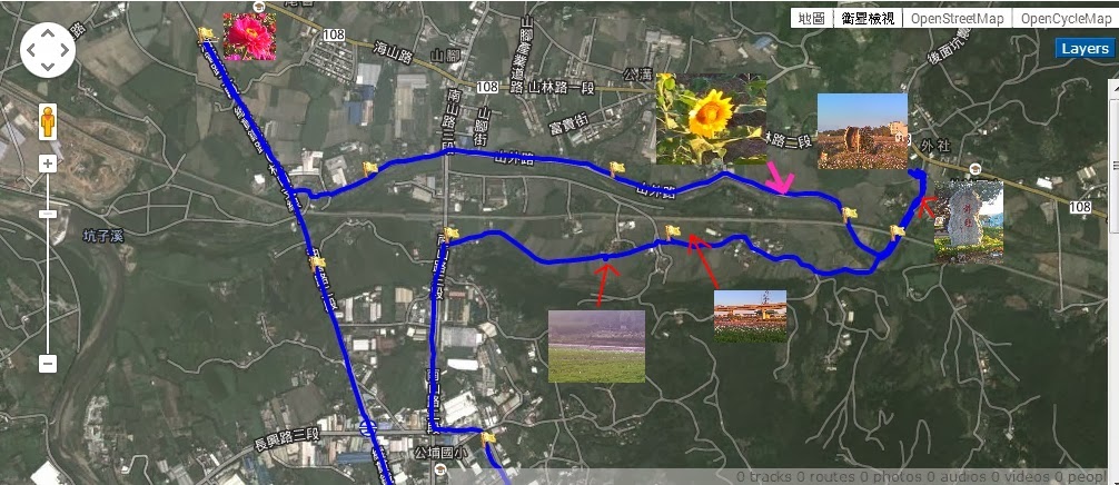 2013/11/23 上午 06:12:00, 15.36 km, Duration: 0.01:31:44(累計:76km)下週六就要跑石門水庫的10km了,膝蓋痛好了.....今天原訂要跑10km,試著模擬下週六要跑的里程....雖說跑10km對我來說應是沒問題,但膝蓋的問題還是困擾著我...所以今天跑步非常重要,確認自已的傷痛應該是好了...6:00從家裡出發,跑平常跑的路徑,長興路->南山路-> 山外路-> 花海會場-> 山脚消防隊.-> 油管路... 當然囉,跑步是我的主要目的,但次要目的就是要去拍花....在山外路這邊首先映人眼簾的是一片綠,遠方的花似乎開得很滿..紅與白的花交叉的綻放著....很多的花還沒有開,我想這邊的花應會在最近幾週會開啊..跑過今天的15km後,我特別把今天的路線及看到花的地點標示出來..至於如何找到這條路徑,請參考我之前的文章分享:跑步路徑分享-山外路五酒桶山篇 ↑今天的路線共有四處有花的地方 ↑首先看到是一片未開的花田,遠遠的你還可以看到紅白花交替的開著. ↑轉個彎,你又能再看其他的花兒在晨光下開著. ↑來到外社的會場,地標外社橋,沒啥車走,我想它的 景觀意義大於交通的用途. ↑在大榕樹後立著外社兩個大字的石碑 ↑來到有"我愛蘆竹"的大字的造景牆 ↑重點的場地,蘆竹花海啦....因為很早所以沒人啦... ↑花車要拍一下... ↑看過重點會場後,我轉向山脚消防隊跑一下....這裡發現唯一的向日葵 田,在草花中 這一窪的黃色大花特別珍貴... 過了山脚的消防隊,驚喜沒了,轉向....另外一片花田,這邊是在油管路的一角,也是我 每天上班會經過的地方,因為上班車多,所以沒有停車下來拍,今天就特別跑到這邊來 拍一下,這邊的花也是盛開得滿滿滿...... ↑跑過山脚的山鼻橋,來到油管路的另外一山花海... ↑跑過山脚的山鼻橋,來到油管路的另外一山花海... ↑跑過山脚的山鼻橋,來到油管路的另外一山花海... 拍完花,跑步的里程數也來到了10km,往南崁方向跑回家,由於拍花的原故...原本只要跑的10km也多跑了5km,今天的里程數來到15km我的跑步部落格