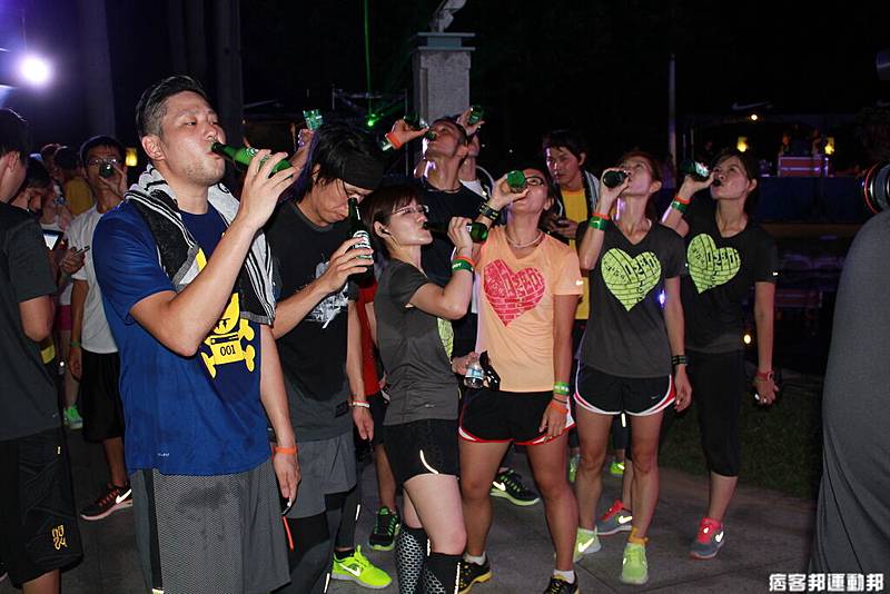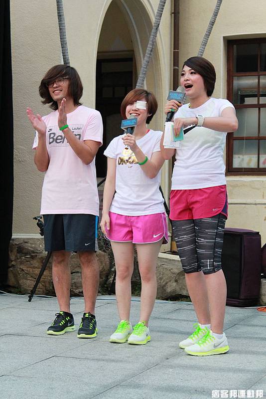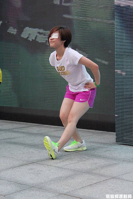 很認真做暖身的棉花糖主唱小球,長針眼只能用單眼還是照樣跑,真是太熱血 XD