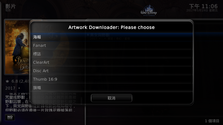 點選播放影片時選擇:點選:Artwork Downloader Gui:手動下載