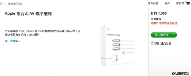 FamtasyArc wrote:買這個可以嗎?...(恕刪) 有些怪怪的??如樓上你POST 電視的圖, 非為數位電視1) 且找到的轉換器為 30pin to AV 端子( Composite 視訊)iProduct AV 端子的轉換器只支援到上一代之 30pin2) 目前Lighting 只有 轉換成 HDMI 或VGA for 數位電視(Projector..)