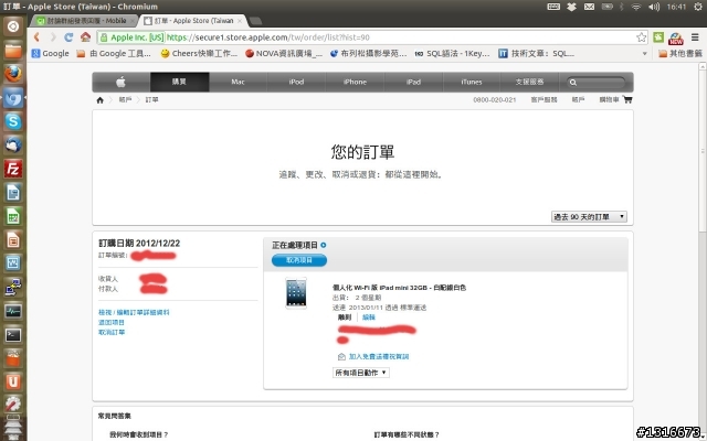 gaston25 wrote:27號凌晨才訂32g...(恕刪) 我也是27號凌晨下訂的(白色16G)。原本預計送達是1月14日但29號就收到mail跟簡訊,表示商品已出貨~追蹤後顯示在香港,預計送達日1月3日!!