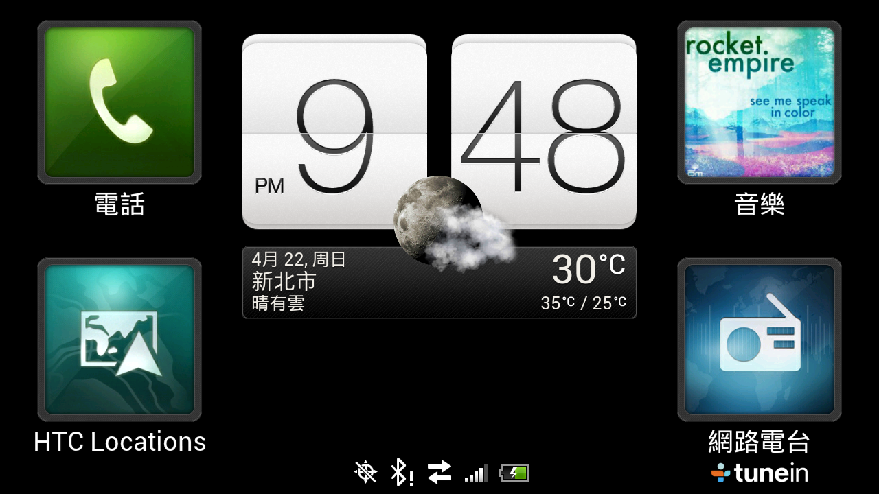 首先就是HTC的招牌:時鐘。還記得去年跨年時,市政府的倒數時鐘吧?一個大大的HTC時鐘!上面還有氣象呢!這次Sense4.0的時鐘氣象做的又更立體了!尤其在旋轉頁面的時候!