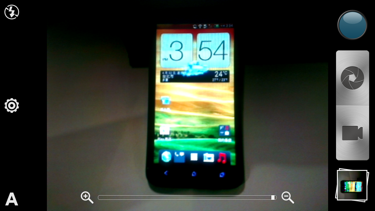 也因為了攝影可以同時拍照,所以OneX把照相與攝影結合成同一個程式,在畫面的右邊就是快門鍵和錄影鍵。