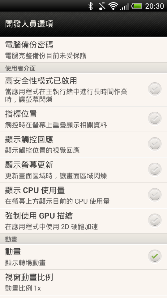 Kevincat wrote:這些地方有勾選到嗎?...(恕刪) 您好請問裡面高安全性模式有什麼作用我阿姨的J早上他才跟我說他開FB整個螢幕四周會閃紅色閃好幾次我就去幫他看了一下開發人員選項結果他不知道為什麼高安全模式被勾了起來我就把他取消打勾就不會再閃了這是什麼原因?