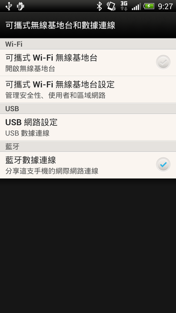 透過藍芽分享網路連線,這個功能並不常用,而且傳輸速度不快,只有一個好處就是比較省電。