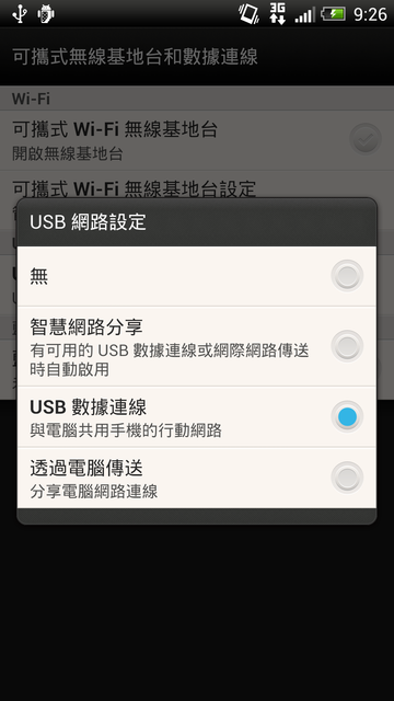 第三招最神奇,借用PC或筆電來讓HTC手機上網,這個真的比傑克還神奇,如果飯店、公司或家裡沒有提供Wi-Fi,就可以讓HTC手機透過USB傳輸線連接筆電來上網,傳輸速度快又免費。