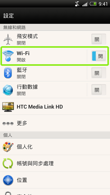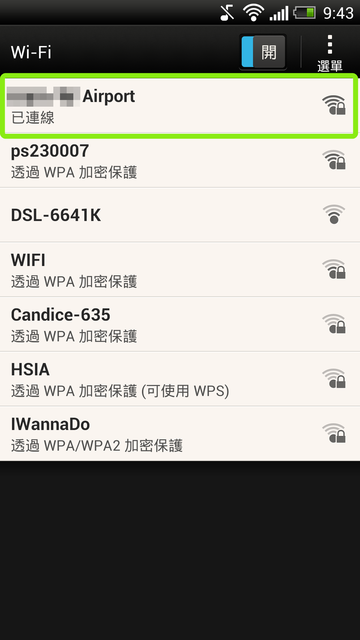 ▼跳回上一頁就可以看到你的Wi-Fi已連線,以後回到家只要勾選【開】就會自動連線,不需要再輸入密碼了,在沒有提供Wi-Fi的環境中可以【關】掉,避免浪費電力。