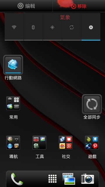 剛剛只是把滿版小工具拿出來炫耀一下,還有更多實用的小型工具請各位朋友自己試試看吧!有幾位用水果機的朋友都很羨慕我的蝴蝶機有這些方便小工具,他們每次看到我隨手一點就可以開關某些設定(例如:Wi-Fi、GPS或藍芽),不用在設定中找老半天。或是拇指一轉就看到新進信件,照片也是大方地直接顯示在桌面上,那時候真是替自己手上的蝴蝶機感到驕傲。(又開始自High了!!!)