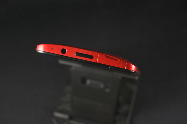 這邊是蝴蝶S跟蝴蝶機一代正面最大的差異,在聽筒加上紅色網狀設計。210萬畫素前鏡頭維持擁有廣角的特色以及HDR的拍攝能力