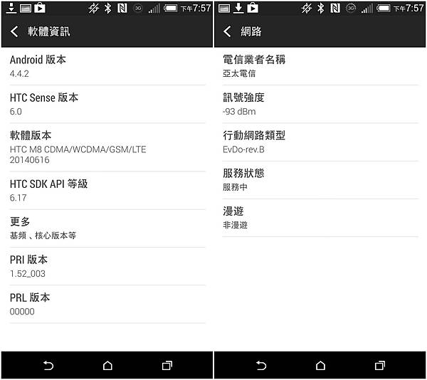 android 版本4.4,實測除了支援台灣2G/3G以外,亞太CDMA也支援到EvDo Rev.B