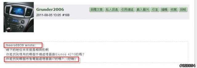 Grunder2006 wrote:還好我有引言下來,還是你堅持你沒打過這些字 ?,01 的文章改過可是都有記錄的喔~~所以你口中說的先前的提問是那i9100跟sensation能裝一樣的遊戲啊!那你是不是要先想辦法在Dos裝上魔獸世界!是這部份嗎 ???我先確認一下再回答好了,免得你等等又放大絕死不認帳(恕刪) 大哥啊...你眼睛真的問題不小啊!一個在185樓一個在190樓誰跟你改文了?你自己好好仔細看過吧!我每一句話可都有認帳的!不要隨便冤枉好人啊~技術性問題什麼的都可以算了,唯獨冤枉人格說我死不認帳的這點我實在認為你完全需要重新確認!