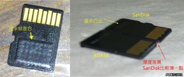 我也是買sandisk 32g c10這張 但是好像出包的示下圖這張卡(借用一下網友的圖)我買的這張卡 背面的晶片就沒那麼凸了 且上面有編號 難到現在後來出的已經有改進了雖說買沒多久 但目前使用算是正常